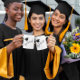 Minimalist black and white graduation with grad cap.