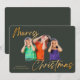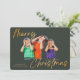 Minimalist Green Gold Merry Christmas Handwriting Photo