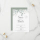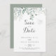 Denna minimalistiska gröna eukalyptus bröllop spara datum är en perfekt för ett rustiskt bröllop. Utformningen har grönt eucalyptus löv för vattenfärgsfärgers elegant.