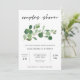 Dessa moderna, minimalistiska duschinbjudningar i par har trendig grönt vattenfärgsfärgade löv och elegant typografi.