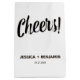 minimalist wedding favor, handwritten typography, elegant modern aesthetic, stylish wedding favor, simple style favor, wedding party reception, cheers favor, couple's name favor, black and white wedding, contemporary calligraphy