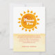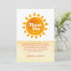 Cute enkla minimalistisk "här kommer barnduschinbjudan", barndusch party-dekoration, välkomstskylt för babydusch, design med vattenfärg nedbränd orange sol och solskensdeka med gult och orange vattenfärg rand känns som sandströköken. Perfekt för pojke, solskenstema för babydusch. Du kan anpassa text och färg.