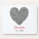 Add a modern, personal touch to your workspace with this minimalist heart fingerprint personalized mouse pad. Featuring clean black fingerprint line art forming a heart, customized with a name and optional “Est.” date, this design brings subtle emotion and contemporary style to any desk.