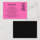 Modern, chic, and vibrant, this minimalist black and hot pink wedding invitation enclosure details Card features elegant initials on a sleek hot pink background. Designed for simplicity and sophistication, the clean layout emphasizes your names and wedding details without unnecessary distractions. Perfect for couples who love contemporary style with a pop of bold color.