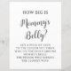 Håll gästerna engagerade och underhållna med detta "Hur stor är Mamas mage?"-tecken för baby shower-spel, designat i en snygg svart-vit minimalistisk stil. Med ren typografi och en modern estetik är detta prisvärda pappersarkstecken det perfekta tillskottet till alla neutrala, könsneutrala eller moderna baby shower-teman.