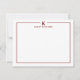 Minimalist Initial Dark Red Two Border Stationery Anteckningskort