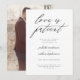 Oj! Håll dina gäster uppdaterade med detaljerna för ditt återplanerade eller uppskjutna evenemang med detta minimalistiska och moderna uppskjutningskort med enkel modern svart-vit typografi. "Kärlek är tålamod" visas i en chic elegant kalligrafiskrift. På baksidan finns en fotomall som du kan ersätta med din egen. Börja anpassa detta kort genom att klicka på "Personifiera denna mall".