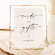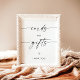 Denna Kort och Present Skylt har en vacker modern minimalistisk elegans att visa upp på din babyfest, bröllop eller speciella tillställning. Redigera enkelt de flesta texter för att matcha din händelse! Text och valv färger är helt redigerbara —> klicka på "Anpassa ytterligare" knappen för att redigera!