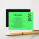 Minimalist Lime Green Enclosure Details Card Tilläggskort