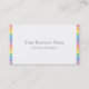 En minimalist, enkel och modern visitkort med ett handlag av färg längs gränsen genom att använda ett pastellfärgat regnbågerandmönster. Underbar för affärer i boutiquesna för mode för modebranschnågot liknande, makeupkonstnärerna, hårstylisterna och hårsalongerna. Personifiera med din affär specificerar lätt.