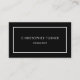 En enkel vit kvadrerar gränsen accentuerar ditt namn på bekläda av denna moderna mall för stilsvartvisitkorten. Detta tvåsidiga kort har att ta prov text på baksidaen för att dig ska personifiera med din egna information om affären. Perfekt för konsulenter och andra affärsprofessioneller.