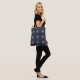 Carry your essentials in style with this chic and versatile tote bag, featuring a clean, minimalist design. The pattern showcases repeating stylized sailboat icons in a crisp off-white or beige hue against a sophisticated, deep navy blue background. This modern, geometric pattern offers a subtle nod to nautical themes without being overtly kitschy, making it a perfect everyday accessory. The top of the bag includes a customizable space for you to add your own text or name, as indicated by the "YOUR NAME" placeholder, allowing you to personalize this stylish accessory for yourself or as a unique gift.