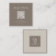 Elegant minimalist square business card featuring a soft beige and taupe neutral palette with a modern QR code layout. Designed for beauty, skincare, spa, and wellness professionals, this card allows clients to instantly access your website, booking page, or social media. Fully customizable with your logo, name, and contact details for a polished, luxury brand look.
