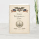 This refined Memorial Day design embraces restraint and solemn dignity through a minimalist, historic print aesthetic. At the top, a classic American eagle with shield spreads its wings between early-era American flags, rendered in a subdued, engraving-inspired style. The centered typography “Happy Memorial Day” is clean and formal, allowing the message to stand quietly on its own. Below, a circular medallion features a battlefield cross–inspired emblem with crossed rifles, a helmet, and an eternal flame, encircled by laurel branches symbolizing honor, remembrance, and sacrifice. Soft parchment tones, fine linework, and generous negative space give the piece a timeless, ceremonial quality appropriate for respectful observance and reflection.
