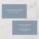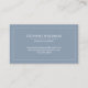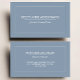 A minimalist professional business card design featuring a thin white rectangular border on a dusty blue background. Personalize it with your name and title in white sans serif and italic text, separated by a thin white line. On the reverse side, add your name, title, and contact details in white on a matching dusty blue background with a thin white border.