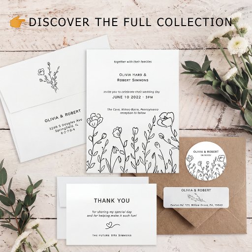Minimalist Rustic Wildblomma Bröllop Pappersservett