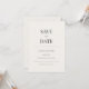 A beautifully simple Save the Date card featuring clean modern typography and soft neutral tones. Designed with generous white space and a refined minimalist layout, this elegant announcement sets the tone for a contemporary and timeless wedding celebration. Easily personalise with your names, date, and location to create a stylish first glimpse of your special day. Perfect as part of a matching minimalist wedding suite.