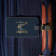 Minimalist Script Navy Blue Metallic Gold Monogram Luggage Tag