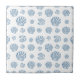 Clean seashell line art pattern ceramic tile with scallops, clams, and delicate pearl details in crisp blue on white. Minimalist, breezy coastal aesthetic with timeless nautical charm. Ideal for beach lovers, ocean enthusiasts, and coastal style fans.