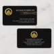 An all black cover is accentuated by a pair of gold stripe lines near the top. Here lies your prestigious name and job title with a global logo you can use towards the left. Near the base of the card is the business name and its contact details.