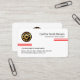 An all white cover is accentuated by a pair of red lines at the top and bottom levels of the card. Your prestigious name, the job title and a global logo you can use are at the top. The global logo is a rotating tire rim. Below the gold logo are your business name and contact details.