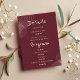 Minimalist vinröd geometrisk Bröllopsdetaljer Program inbjudningar. Denna enkla, eleganta bröllopsinbjudan är perfekt för alla klassiska och sofistikerade trendiga tjejer. Designen är perfekt för en stilig fest. Anpassa denna design med ditt meddelande och personlig information. Alla mönster är tryckta.