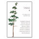 This minimalist wedding table card features a watercolor spruce tree against a natural background.