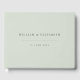 A refined minimalist wedding guest book designed with clean modern typography and soft neutral tones. The front features the couple’s names and wedding date in an elegant layout, while the back includes a subtle monogram of their initials for a polished finishing touch.