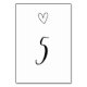 Minimalist Wedding Table Number Card with Heart Bordsnummer