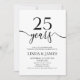 Minimalist White Black 25th Wedding Anniversary Inbjudningar
