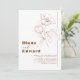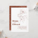 Terracotta-minimalistvigselinbjudan har vita blommor och modern typografi