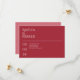Berätta din speciella dag med vår minimalistiske räddare, designad för att matcha vår minimalistiska krimson Red bröllopsinbjudning. Det här kortet med en varm krimson röd färg fångar glädjen och upphetsningen hos det kommande firande. Texten är i ett lättläst teckensnitt som ser till att meddelandet är tydligt och snyggt. Med en nyktert placerad typografi förenar det här datumet skönhet och enkelhet och anger perfektens ton för bröllop. Perfekt för par som uppskattar modern, underskattad design.