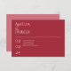 Berätta din speciella dag med vår minimalistiske räddare, designad för att matcha vår minimalistiska krimson Red bröllopsinbjudning. Det här kortet med en varm krimson röd färg fångar glädjen och upphetsningen hos det kommande firande. Texten är i ett lättläst teckensnitt som ser till att meddelandet är tydligt och snyggt. Med en nyktert placerad typografi förenar det här datumet skönhet och enkelhet och anger perfektens ton för bröllop. Perfekt för par som uppskattar modern, underskattad design.