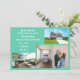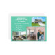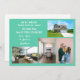 Minimalistisk, elegant, trendigets flytta-annonskort med fyra anpassningsbar, namnen av familjemedlemmar och texten "Vi har flyttat! Kom besöker oss snart!" + det nya adress och landline-mobila numret på framsidan för att du ska kunna anpassa dig. Modern, chic akvamarin teal bakgrund med vit skrift.