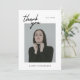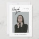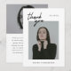 Minimalistic 2-Photo Black White Script Graduation Thank You Card. A modern and elegant graduation party thank you card, with 2 custom photo slots on the front and back.