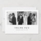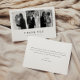 Minimalistic 3-Photo Black & White Wedding Thank You Card. Add three of your favorite wedding photos, bride and groom names, and your wedding date on the front, and add your personalized thank you message on the back.