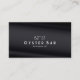 This minimalistic business card features art deco style fonts against a dark 'reflective' background.