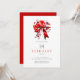 Happy Valentine's Party invitation featuring a red heart bow tie on a white background.