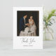 Minimalistic Script Lettering Wedding Photo Thank You Card. A modern and elegant wedding thank you card, designed in black and white. Customize with bride and groom names, a wedding photo of your choice, and your personalized thank you message on the back.