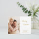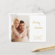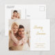 Detta spara datum vykort har en modern minimalistisk design och är accentuerat med enkel guld skrift text. Vykortet erbjuder 2 foton, en på framsidan och en andra på baksidan. Anpassad text på baksidan låter dig lägga till fler bröllopsdetaljer.