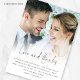 Minimalistisk 2 foton Kärlek tackar Bröllop Tack. Tillgänglig digitalt och utskriven. Kärlek och tack finns i ett handskrivet stil. Anpassa enkelt resten av texten till dina egna detaljer och ersätt exempelbilderna på framsidan och baksidan med dina egna.