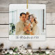 Modern Simple Elegant Calligraphy Black White 3 Family Photo Collage God jul Script Ceramic Ornament. Den här festliga, minimalistiska, vimatiska tre fotot helgdag Ornament har ett söt-rutnätsfotokollage och Familj namn och år! Familjen namn är skriven i ett handskript med snabb teckenskrift i svart på vit färg-bakgrund. På motsatt sida ett foto med familjen namn. Söten är viktig för din familj och dina vänner i julens Julhelg.