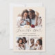 Det här enkla, minimalistiska Spara datumkortet har en 3-fotokollage, med ett bågformat foto överst och två mindre fyrkantiga foton vid grund. Mellan visas orden "Spara datum" i elegantens svarta handskriftsskript, följt av parets namn, bröllop datum och stad i sans serif-teckensnitt på en beige bakgrund. Lägg till ett mer detaljerat meddelande med ytterligare information om motsatsen, tillsammans med en QR-kod som hjälper dina gäster att besöka webbplatsen för bröllop.