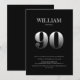 Inbjudan dina vänner och nära vänner till ditt 90:e födelsedagsfirande med denna snyggt minimalistisk svart och silver nittontionde födelsedagsfest inbjudan.