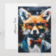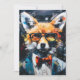 En vass räv i kostym och glasögon, som blandar pulserande färg och dynamiska former för att fånga essensen av sofistikerad, snabb elegans.