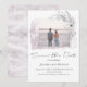 Akryl rosabruschstrykning är en hållare för ditt eget foto i kombination med en romantisk grå blomsterbukett. Allt på det här kortet talar för romantik och minimalism, liksom valet av handskrivna stil för anpassningsbar information. Anpassas enkelt för att sprida budskapet om din speciella dag med stil