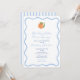 I Möhippa har inbjudan en minimalistisk estetik, med en begränsad palett för färg, en enkel vågigt gräns, en enda orange med löv och en blå och vit stripe bakåt.