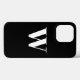 Anpassa, anpassa monogram, inledande, svart och vit brev-minimalistisk modern elegant-snyggt av klassisk chic iphone case. Anpassade, vit text, svart, fast bakgrund med oformaterad bakgrund.