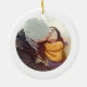 Minimalistisk julprydnad med personlig pars namn och datum, en vintersnöscen i träd och ditt favoritfoto på baksidan. Perfekt för den första julen tillsammans efter gifta sig eller flytta in i ett nytt hem tillsammans.