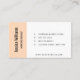 Skapa ett varaktigt intryck med detta stilrena professionella visitkort i persikofärg och vitt, perfekt anpassat för marknadsföringsspecialister och kreativa frilansare. Den dubbelsidiga designen har en ren, minimalistisk estetik med ett mjukt pastellfärgat färgfält som framhäver ditt namn och din webbplats på framsidan, medan baksidan snyggt visar din e-post, telefon, sociala medier-hanterare och kontoadress. Tryckt på högkvalitativt kartongpapper är denna mall lätt att anpassa och idealisk för nätverkande i stil vid konferenser eller kundmöten.